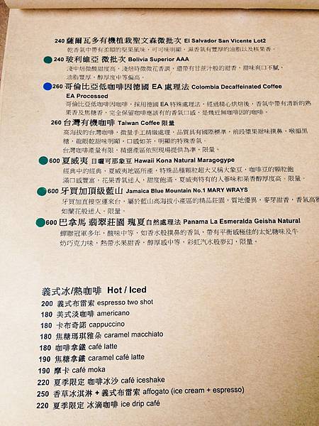 來這邊 就有口福了,不論是牙買加藍山、巴拿馬藝伎都有,甚至還有台灣的咖啡豆可以選擇