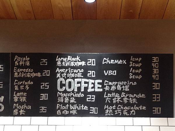 牆上手寫的飲料菜單,品項不少,