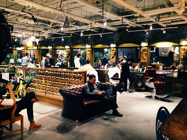 就是一個美式復古髮廊的外表,透明玻璃看進來都是一堆剪油頭的髮型師