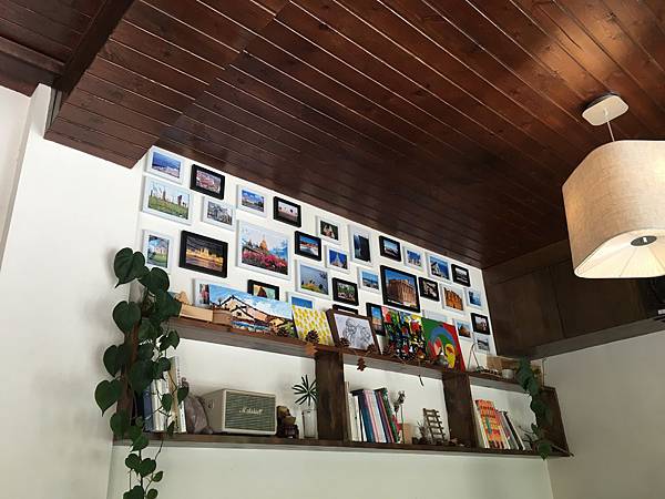 牆上擺滿了各國的風景照和旅遊書,