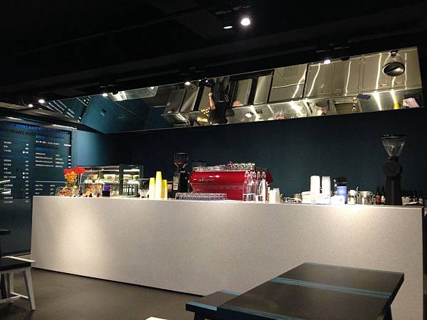 值得一提的是吧檯上方有一整面鏡子,可以反射讓人看到店員操作的細節,