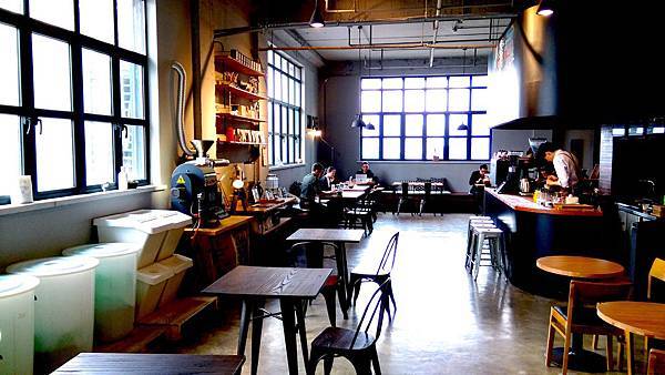 旁邊有烘豆機以現烘焙新鮮咖啡豆提供