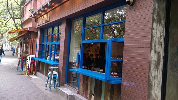 而這家Sumerian 則是被藍色系窗戶 門面所深深吸引