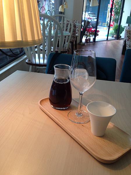而冰的咖啡是裝在酒杯裡面,看起來特別有氣氛,