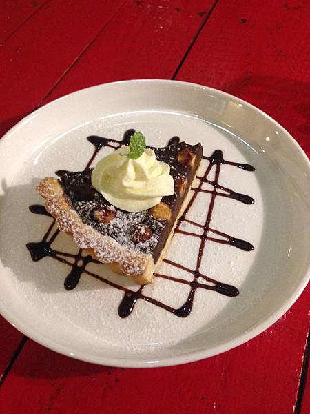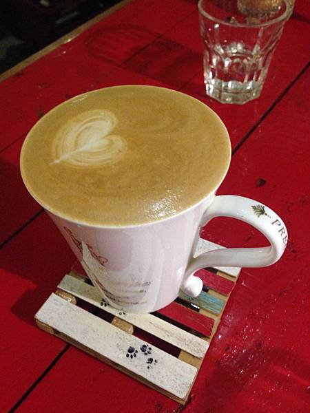 拿鐵名為翡冷翠拿鐵, NT$ 140, 佐上一朵小愛心, 搭配撒上糖霜的蛋糕