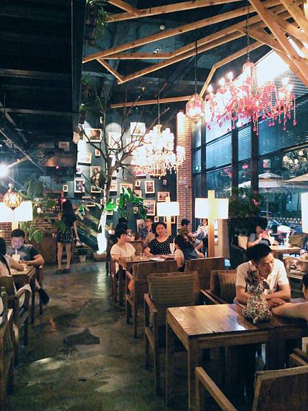 在店內種了好幾棵樹木, 加上大量的木製家具, 讓人覺得舒服